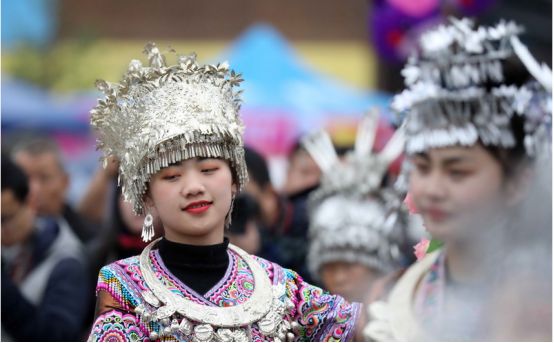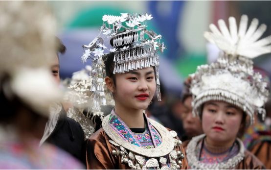 苗族头饰主要是以银饰为主。苗族女孩从学会走路开始,父母就会给女儿制作一套苗族民族盛装和头饰,苗族女孩一般6岁左右就可以参加每年的民族盛会,并且从小学习化妆技术。苗族的盛会主要集中在春节后,也叫坡会,就是山坡上的聚会,这一天苗族姑娘就会穿上珍藏已久的民族盛装,戴上头饰,把自己打扮的漂漂亮亮,参加芦笙踩堂舞,展示自己的美丽一面。