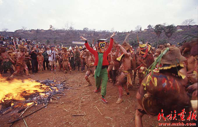 2000年后,杨丽萍将更多的精力投入到云南民族文化的挖掘整理中。图为她在彝族祭火现场参与表演(民族画报资料)