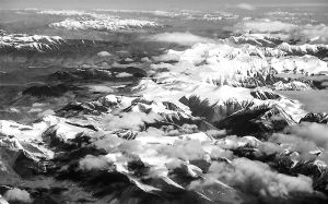在飞机上俯瞰昆仑山雪景。新华社记者 江文耀摄