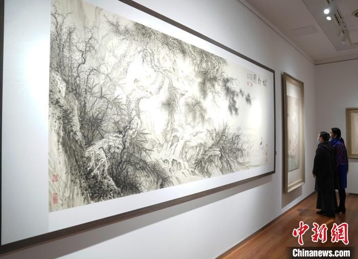 在展览上,为庆祝中国艺术研究院建院70周年,田黎明和许俊,牛克诚、周石峰、任清和曾三凯,刘万鸣和刘彦水,赵建成、崔进和刘少宁分别合作的《新绿》《千岩霞映》《棲禽图》《我见青山多妩媚》4幅丈二尺幅的中国画同时亮相。