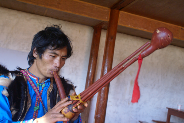 傈僳族民间器乐艺术具有独特的民族风格和特色,在傈僳族民间音乐中有重要地位。其种类主要有琵琶(刘军摄)、口弦、竹笛、叶笛、葫芦笙(刘军摄)、二胡等。