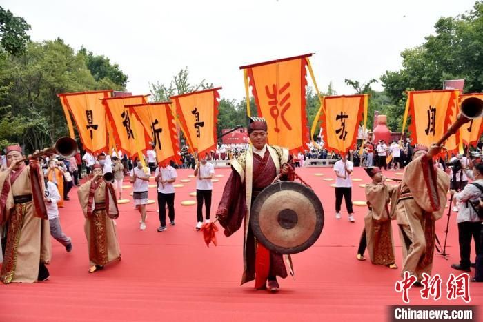 11日上午,2021第十八届中国彭祖伏羊节在江苏徐州彭祖园举行开幕式,徐州当地再次呈现一年一度的“万人空巷吃伏羊”民俗奇观。作为中国彭祖伏羊节开幕式的重头戏,来自全国各地数百名烹饪大师再次齐聚彭祖祠共同祭拜华夏烹饪鼻祖彭祖。烹饪大师们统一着装,整齐列队,行叩拜大礼,声势浩大,庄严肃穆,十分壮观。