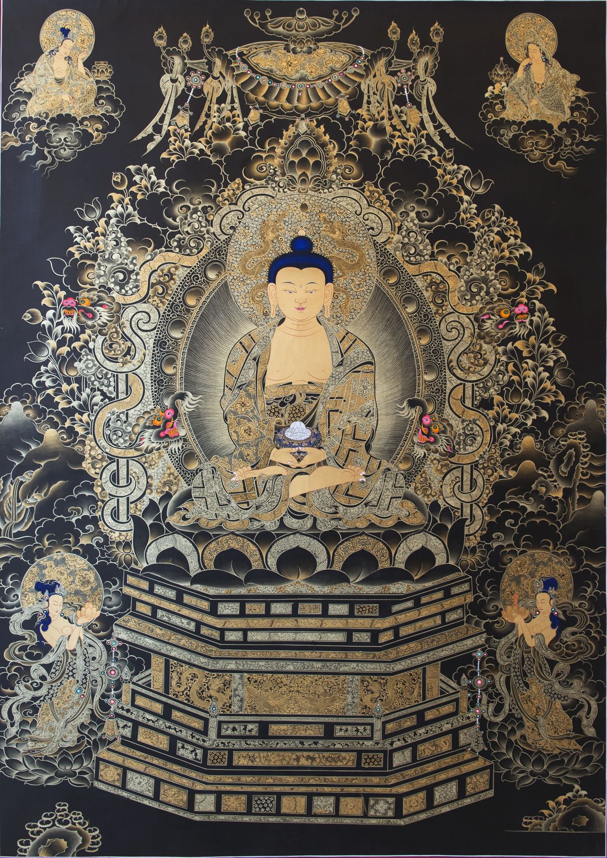 阿弥陀佛(梵语Amitābha),又名无量佛、无量光佛、无量寿佛等。大乘经载,阿弥陀佛在过去久远劫时曾立大愿,建立西方净土,广度无边众生,成就无量庄严功德,为大乘佛教所广为崇敬和弘扬。大乘佛经主要如《无量寿经》、《阿弥陀经》、《观无量寿佛经》,对阿弥陀佛及其西方极乐世界均有详述。大乘佛教流传之地,如中国、日本等大乘教区,阿弥陀佛信仰也尤为繁盛和重要。而汉传佛教的净土宗,则完全以往生阿弥陀佛的西方净土作为专修的法门。