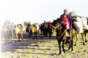 那是一支浩浩荡荡的队伍,每户人家的家就在那三四头骆驼的背上,骆驼的先后排列也是有讲究的