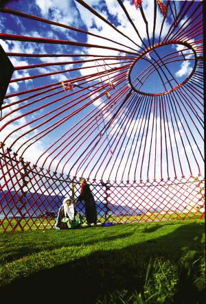 逐丰美牧草而居,是哈萨克牧民每年要做的功课。搭好帐篷架子,坐下来喘口气,天好蓝,这里就是他们这一季的家了