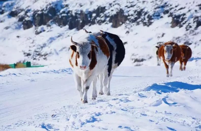 银裹素装的乡村民居,不畏严寒的马匹、黄牛寻觅着美食……这何尝不是体验风景就在路上的绝佳机会呢?