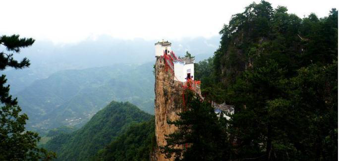 塔云山道观位于陕西镇安县西南的柴坪镇境内,主峰金顶海拔1665.8米,形似宝塔。位于金顶的观音殿,三面悬于万丈深渊,可谓鬼斧神工,令人叹为观止,被称为“秦楚一柱,绝顶道观”。