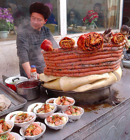 新疆盛产牛羊,是我国主要畜牧业基地之一。信仰伊斯兰教的民族以食牛羊肉为主。牛羊肉风味小吃名类繁多自不待言,就是以羊的内脏作原料,也能烹制出鲜香异常的美味来。米肠子与面肺子便是其中的代表。