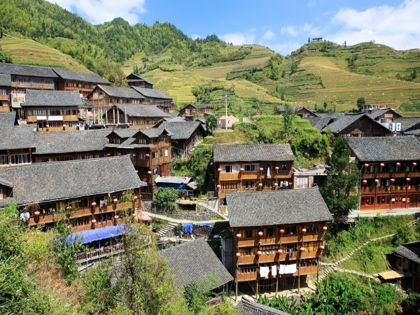 金竹壮寨位于桂林市龙胜县龙脊镇,是龙脊十三寨的"第一寨",因寨前有一片金色的竹子而得名。有98户人家,430多人口,是我国典型的壮族村寨,誉为"北壮第一寨",其建筑具有鲜明的壮族风格,吊脚楼建筑风格独特保持得比较完整,1992年曾被联合国教科文组织誉为"壮寨的楷模",2007年被评为中国首批"中国景观村落",2014年获得国家民委命名首批"中国少数民族特色村寨"。