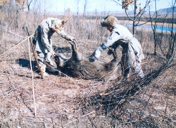 达斡尔族猎获野猪(刘军摄)