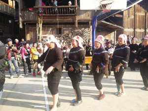 图为该村的苗族妇女们表演“大女子主义”舞蹈。