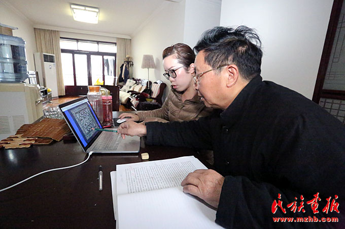 杨文斌老师和她的夫人梁定芳老师都是“非遗”传承人。现在他们忙着著书、讲学、开研讨会。谈起蜡染、谈起民族民间工艺,杨文斌老师滔滔不绝:“现在要从三个方面认识和研究民族民间工艺:一是从历史学、人类学、民族学的角度解读,二是从审美学、艺术视觉理念的角度解读,三是从工艺学、材料学、技艺学的角度解读。现在植物染料的加工和染色技艺消失得很快。老祖宗留下的宝贝到我们这代可不能扭曲和断裂。”