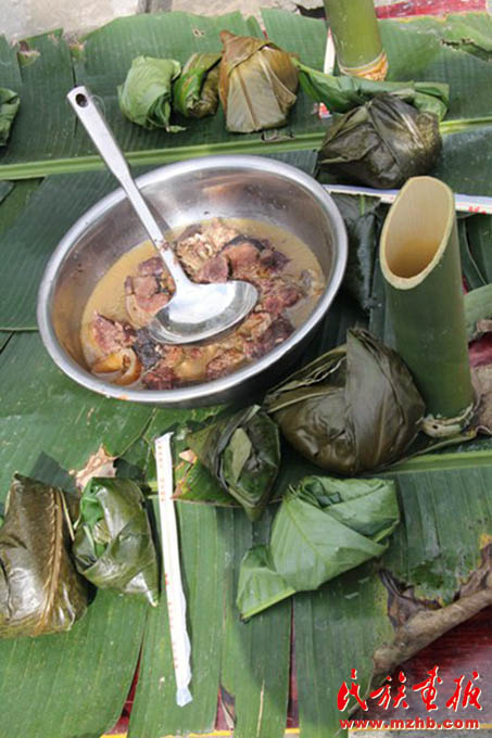 包在野生植物叶片里的特色饭菜