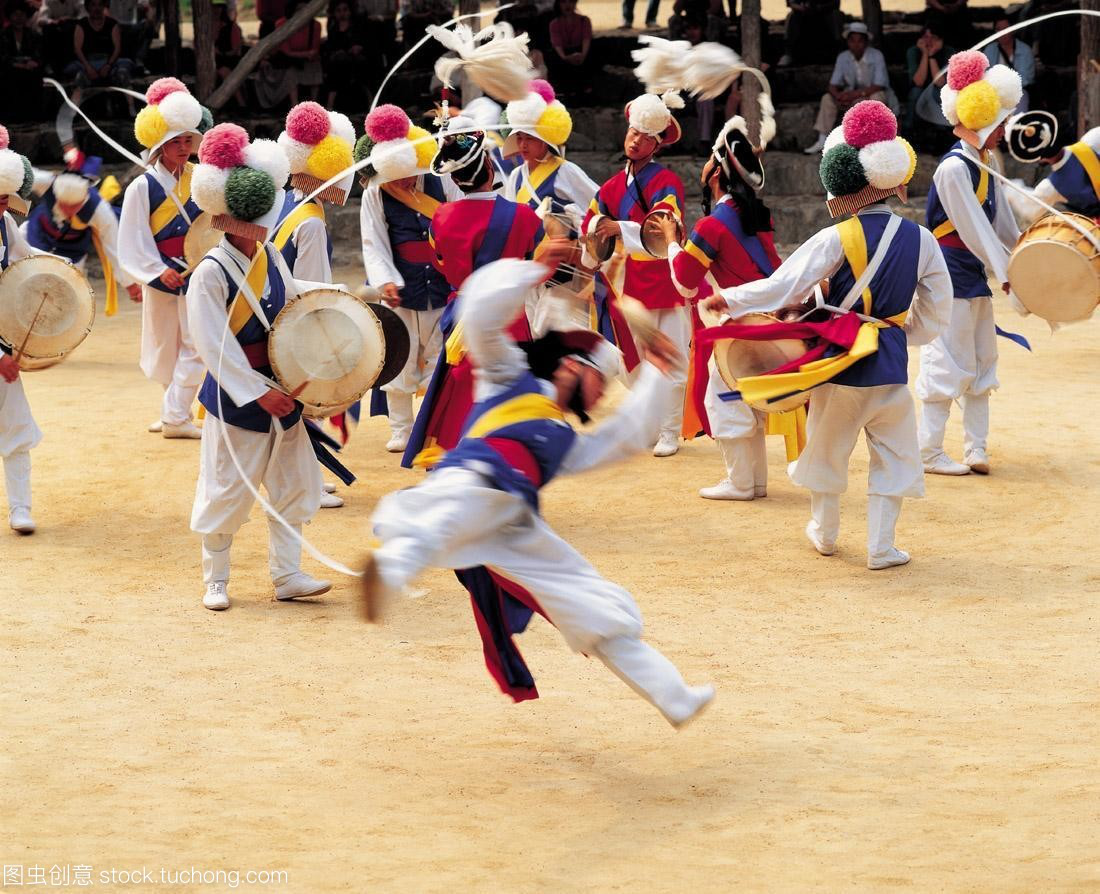 说起朝鲜族的四物乐就不得不先说朝鲜民族民俗音乐文化产生的背景。通过众多资料可以看出,朝鲜民族文化可以追溯到新石器时代。在古代前期的音乐文化主要是原始共同体社会里祭天仪式中的乐歌舞,也就是初步的器乐、声乐以及舞蹈三位合一的表现形态。