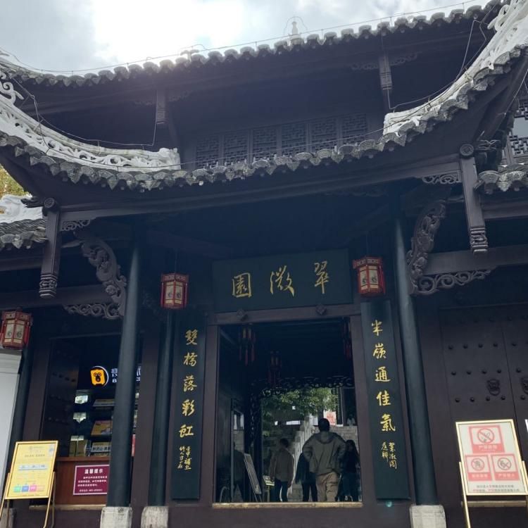 第一部分是石牌坊、浮玉桥和涵碧亭。汉白玉石牌坊上书“城南胜迹”四个大字,立柱的“抱鼓石”为八尊石狮子,石狮尾朝上头朝下,活灵活现,富有生气。穿过石牌坊走上浮玉桥,桥体连接南北两岸,其名来源于其质地,由贵州特产白棉石打造,从远处看犹如一条玉带浮在水面。桥上的涵碧亭是古人纳凉休息的地方,因桥下有深潭“涵碧潭”而得名,亭子四柱上刻有两幅对联,分别是“水从碧玉环中出,人在青莲瓣里行”、“银汉浮空星过水,玉虹拖雨雁横秋”。