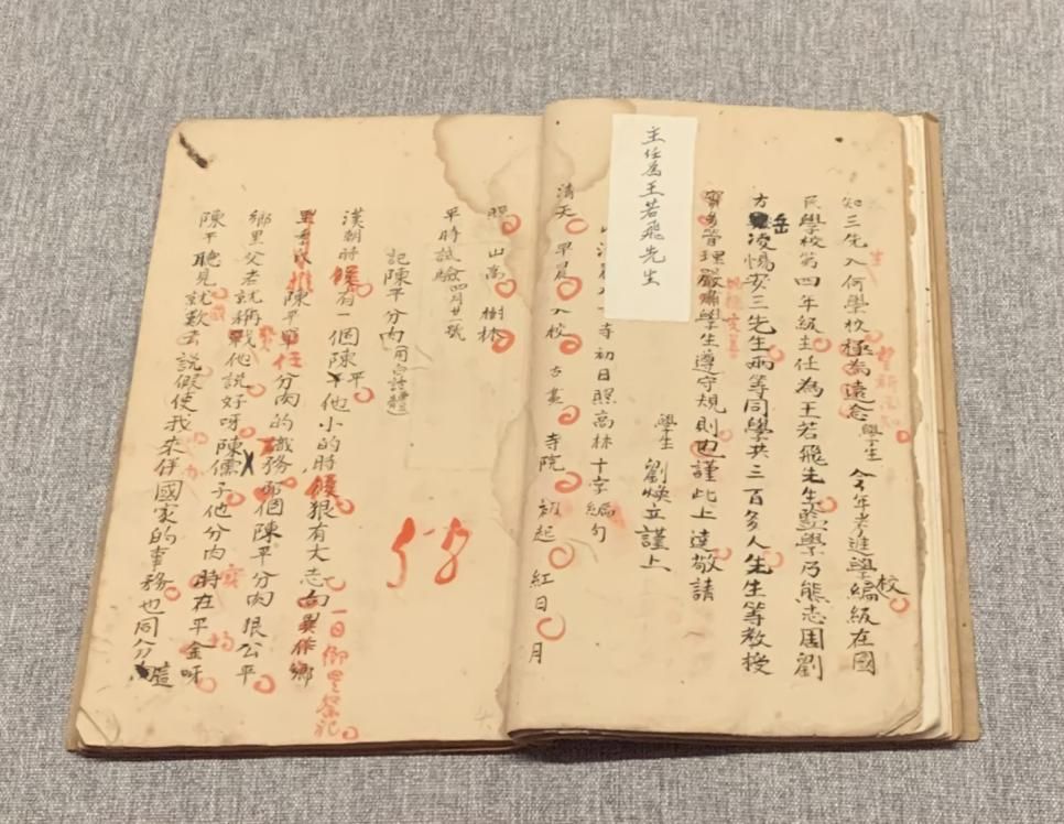 王若飞亲笔批改的小学课本(许觊佳摄于贵州省博物馆)