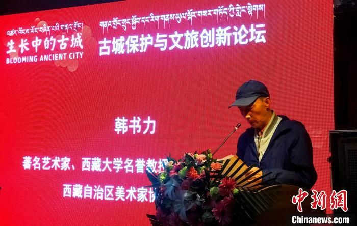 著名艺术家韩书力在古城保护与文旅创新论坛上发言。 冉文娟 摄