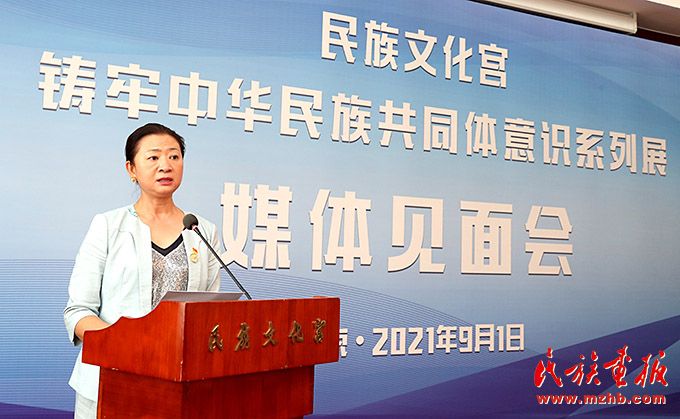 民族文化宫博物馆馆长陶颖介绍“铸牢中华民族共同体意识系列展”相关情况。