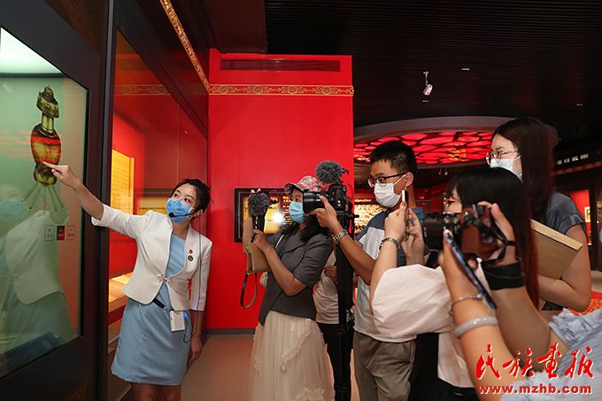 丰厚精美的馆藏展品吸引记者驻足观看。