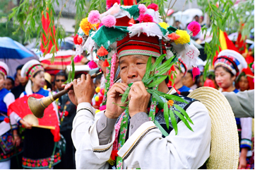 大理青山成年礼上的白族少女头饰