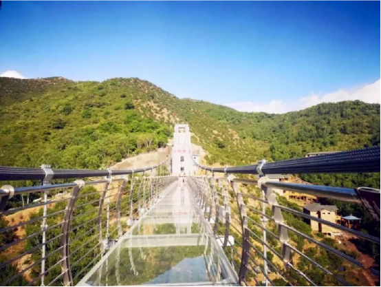 沿着木栈道,一路缓缓而行。满山遍野的绿扑面而来,自然生长的白桦林,依山而建的鳞次栉比的小木屋,78米高212米长的玻璃栈道,2万平方米的水上乐园……人与景相依相融,林胡古塞处处充满着现代与古朴结合的画面。