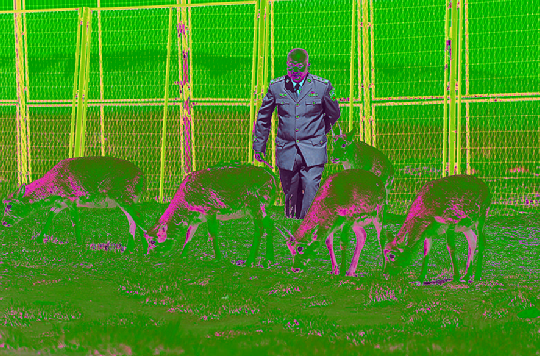 在可可西里国家级自然保护区索南达杰保护站,站长赵新录与藏羚羊在一起(9月28日摄)。新华社记者 李占轶 摄