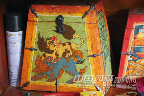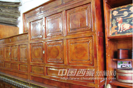 藏式家具上的特色绘图,陈旧的用色方式完美地展现了悠久的文化内涵。