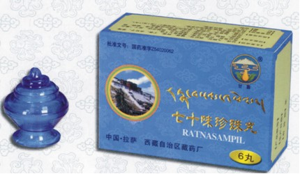 七十味珍珠丸成方于公元8世纪,始载于藏医巨著《四部医典》中,本产品根据藏医学原理,选用生长在世界屋脊特殊生态环境下的天然稀有藏药材,采用传统配伍精制而成。本产品配方奇特、选料上乘、炮制特殊、做工考究、功能广泛、副作用小,采药、炮制、配方无不遵循古法,不得有丝毫虚假,从而保证了药物神奇疗效,经一千多年的临床实践证明,本药物主治:安神,镇静,通经活络,调和气血,醒脑开窍。用于“黑白脉病”、“龙血”不调;用途广泛,无病服用具有滋补健身、提高身体免疫力等功能。