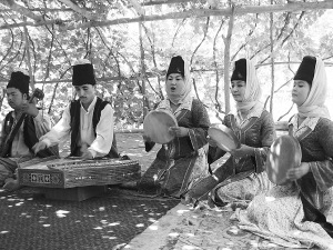 说起来,我国扬琴分为两派,一南一北。南派于明代末年自波斯(今伊朗)经海路传入我国,最初只在广东沿海一带流传,后逐渐遍及闽浙、江淮和中原。而新疆的锵,未必列入北派,但的确是由西亚至中亚一带的“丝绸之路”传入新疆的,时间应早于明末。由于锵适用于演奏维吾尔族木卡姆和为民间歌舞伴奏,很快便传遍了天山南北。
