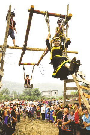 彝族同胞在火把节上荡起“观音秋”刘传福摄