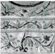 侗族刺绣工艺流行于湘、桂、黔三省交界处的侗族聚居区。图案纹样多取材于自然景物,如花、鸟、鱼、虫之类。画面生动活泼,色彩明丽。