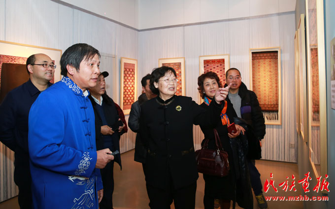 座谈会上,中国民族博物馆副馆长张志文介绍说:土家族是一个古老的民族,有着4000多年的文明发展史。土家族在全国有2个自治州、8个自治县,人口达835万。土家织锦从秦汉时期萌芽,历经賨布、溪布、斑布、土锦等几个发展阶段,在明、清时期开始定型,至今已有2000余年的灿烂历史。中纪委驻财政部纪检组原组长、全国妇女手工编织协会副会长贺邦靖说:土家织锦是土家妇女智慧的结晶,是武陵山区文化精准扶贫的重点项目之一。从这个展览上我们不仅可以看到土家织锦的灿烂与美丽,还可以看到国家实施文化精准扶贫的实效。