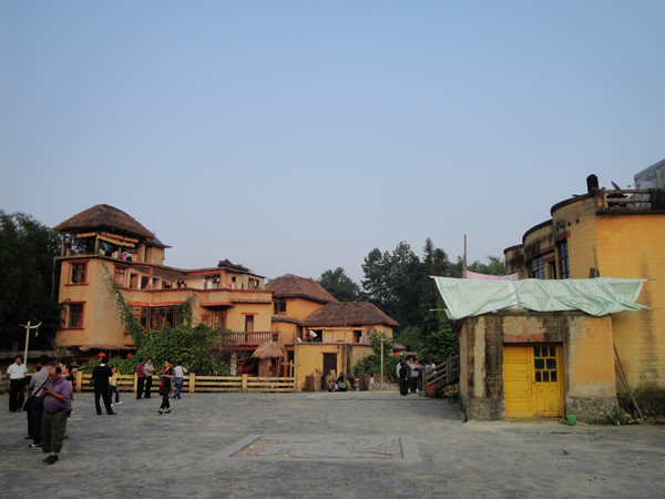 有的地方建屋顶有平顶的“土掌房”和双斜面、四斜面的茅草房。平顶房在内地和红河南岸均较普遍,其构造是在横梁上铺一层木条,上覆茅草,茅草上再铺上粘土夯实,坚硬、平整,类似水泥地面。