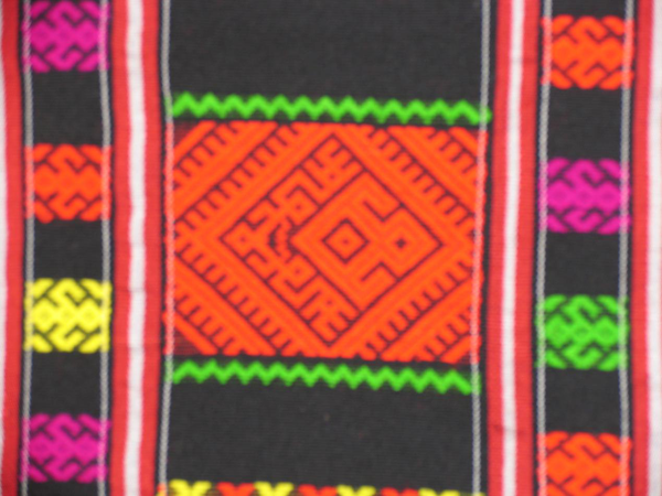 黎锦花纹图案丰富多彩,多达百余种。较有代表性的图案有人物类图案、动物类图案、植物类图案、天体类图案、器物类图案、文字类图案。其中,“人物类图案”是黎锦的基本核心、中心图案,它在各种织锦中永远居于中心位置,形成中心纹饰,其他图案可根据需要,或放在它的周边,或放在它的第三、第四等位上。人物类图案有单个的,也有多个组合的,有全身的,也有半身和头像的;同时也有复合图的。复合图像上,有三重人物图像嵌套,大套中,中套小,形成复合效果,构图复杂,工艺精湛。人物类图案即祖先纹或鬼纹,黎族民间管这类纹样叫做“剖”、“登”,即“祖先”或“鬼”的意思。黎锦中的人物纹样的定位,反映了黎族人的浓厚的祖先崇拜意识。