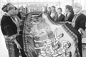 历时一年时间织造,长186.7米黎族民俗风情长卷织锦壁挂《锦绣黎家》,日前喜获上海大世界基尼斯世界纪...