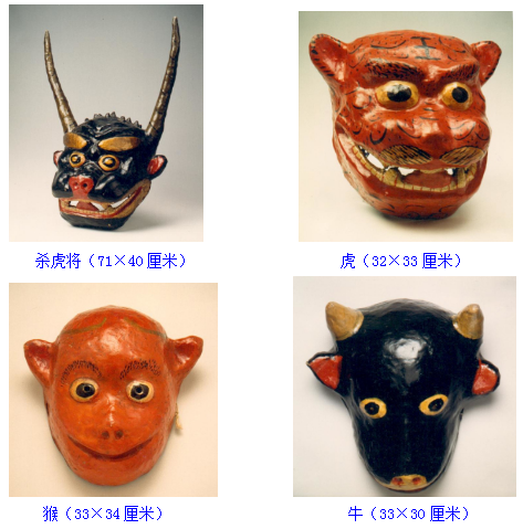 “杀虎将”反映的是当地视为山王爷的杀虎将为民除害,降伏老虎的内容。面具角色有牛、虎、猴、杀虎将。牛象征农民,代表善,虎和猴象征祸害。表演牛和虎、猴激烈打斗,当牛被打败倒地时,杀虎将持剑上场,打杀格斗等场面。此时场外观众上场助战,直至将虎降服,整个场面热烈紧张。