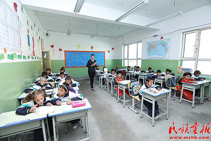 帕米尔高原上的塔吉克族孩子们在中国建设银行捐赠的希望小学的明亮教室里上课(张建辉 摄影)