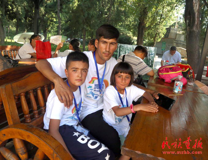 在全国各地的支援下,塔吉克族学生和老师有机会走出大山,出外看看,这是师生三人在北京(娘吉加 摄影)