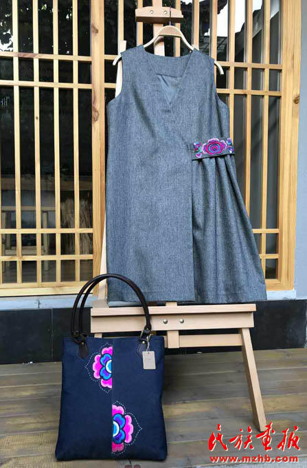 这位对彝族传统服饰文化情有独钟的汉族设计师在设计服饰上大有用心,从绣品图案的选定到服饰的整体裁剪都事必躬亲。她还经常下乡采风,向当地彝族绣女学习传统彝绣知识,再把传统图案与现代元素相融合,一件件具有现代风格配上传统彝绣图案的服饰经过她的手,别具创意的现代风彝族服饰就像变魔法似的展现在了大众眼前。
