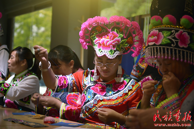 不忘初心,方能远行。在上下求索创意民族服饰的同时,卢洁莹不忘致力于彝族传统文化的发扬与传播。2016年起,索玉文化美学创意有限公司与楚雄市妇联、彝绣协会共同主办的,旨在帮助楚雄山区彝族妇女用传统手工技艺精准扶贫的培训项目“彝绣之梦”已开展了两年。“创业不易,要致富也要带动各族同胞一起致富。”卢洁莹说,“我们的培训班每年都开办,就是要帮助绣女们走出大山,走进大众的视角,提供一个给她们展示与发掘精美彝绣技艺的平台。”