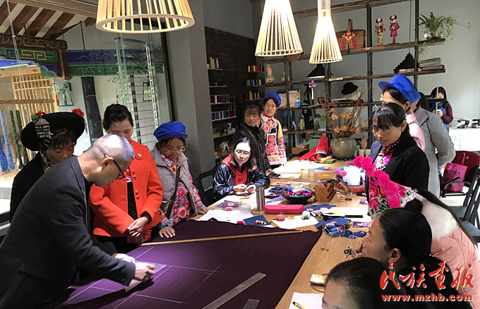 索玉文化美学创意有限公司组织创办“彝绣之梦”培训班,来自山区的彝族绣女们在服装裁剪课上认真听讲(索玉文化美学创意有限公司 供图)