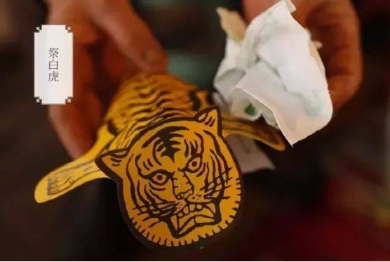 民间传说白虎是口舌是非之神,每年都会在这天出来觅食,开口噬人,犯之则在这年之内,常遭邪恶小人阻挠前程,会百般不顺。为了自保,在惊蛰当天拜祭用纸绘的老虎,纸老虎一般为黄毛黑斑纹, 口角画有一一对獠牙,拜祭时,需以猪血喂之,使其吃饱不再出口伤人,再以生猪肉抹在纸老虎的嘴上,使之充满油水,不能张口说人是非。