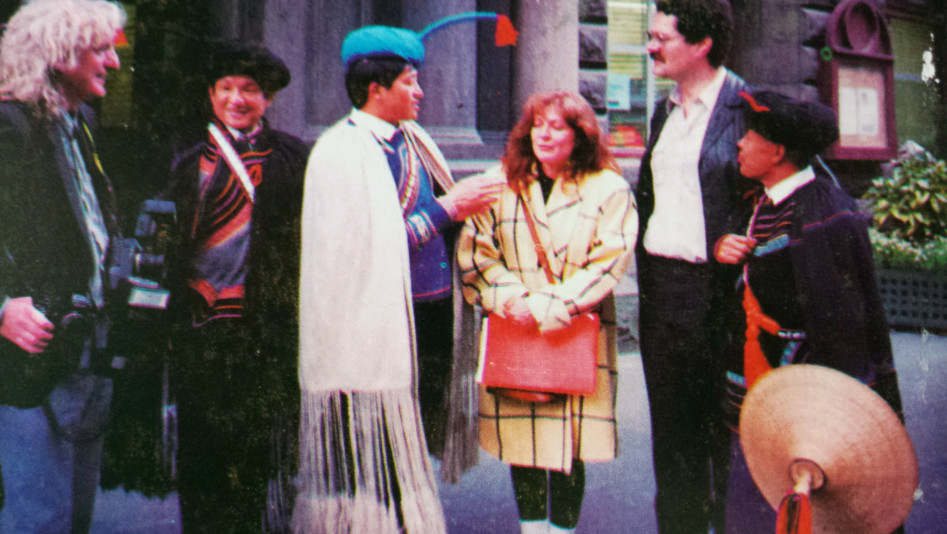 ▲上世纪90年代,沙马拉毅(左三)参加国际会议。 沙马拉毅供图