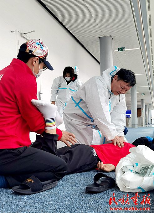 乌日根桑格利用在机场转机时间,为国家柔道队运动员进行调整治疗。