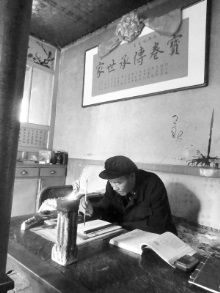 河西宝卷国家级传承人代兴位在家抄写宝卷。