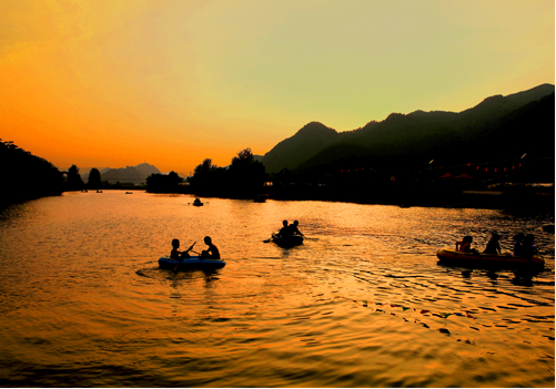 夕阳湾滩荡小舟